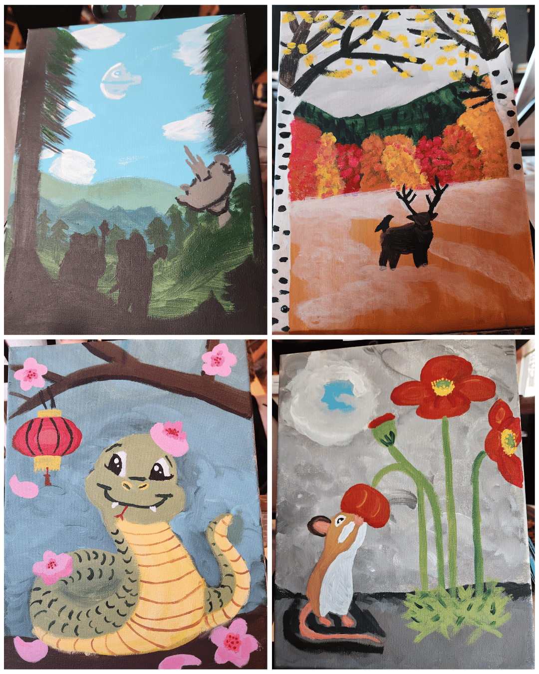 My paintings! I think the snake is my favorite, with the elk as a close second due to the autumn colors.